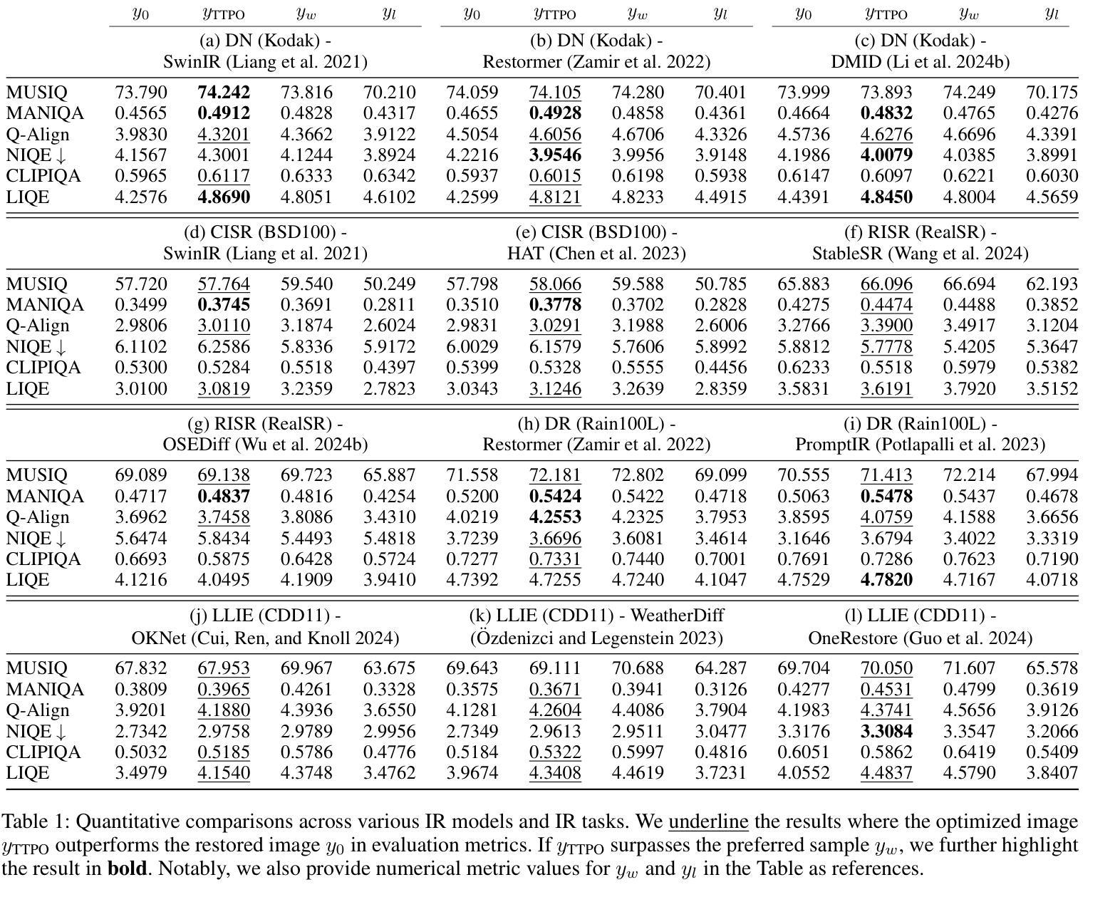 - 提出了Test-Time Preference Optimization(TTPO)范式,旨在提高图像修复的感知质量并适应各种任务或模型。