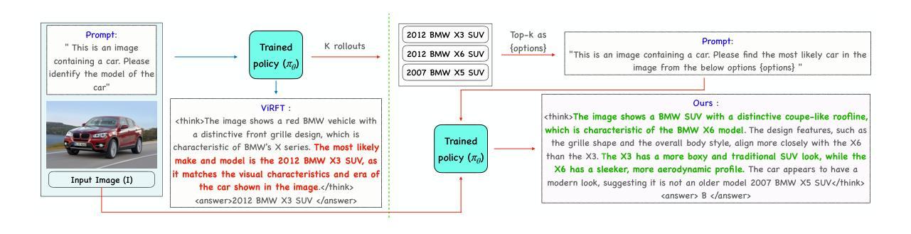 - DiVE-k通过创建基于模型预测的多选题,使用RL训练模型进行选择。