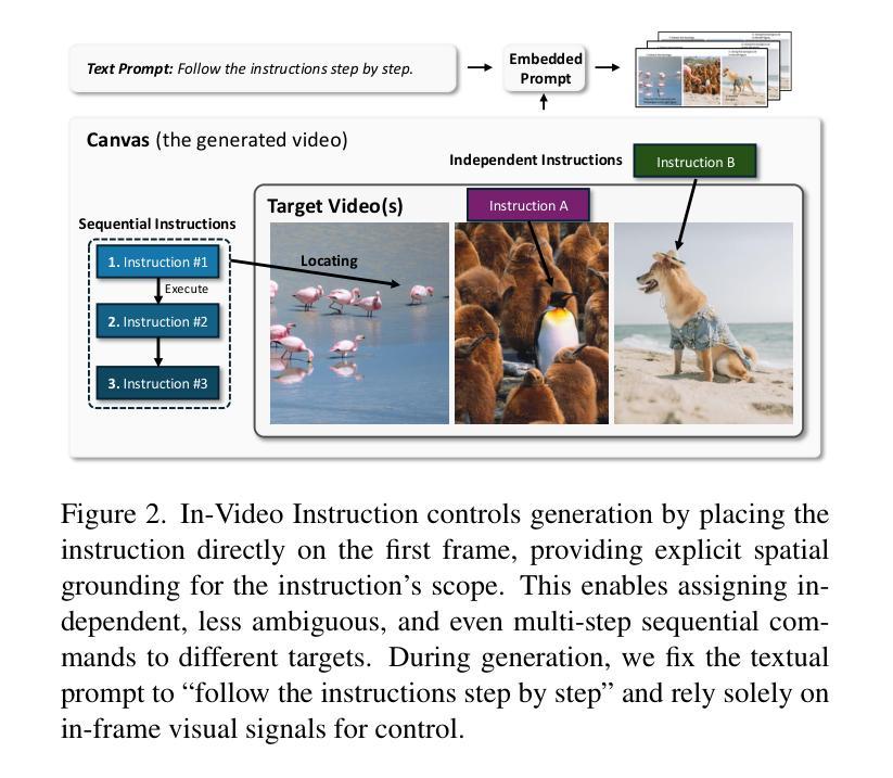 - 本研究提出了“视频内指令”的概念,即利用帧内嵌入的视觉信号作为指令来控制图像到视频生成。