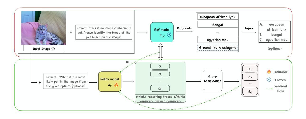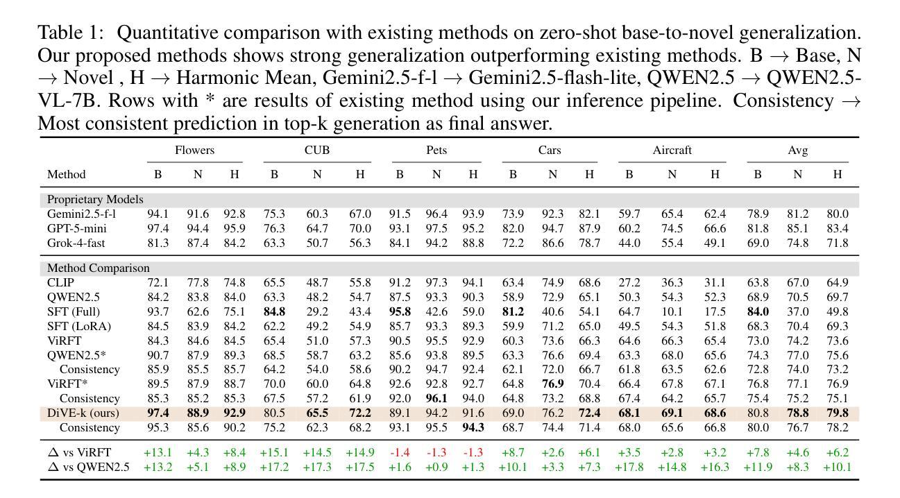 - DiVE-k框架利用模型的前k个预测作为训练信号,进行差异化视觉推理。