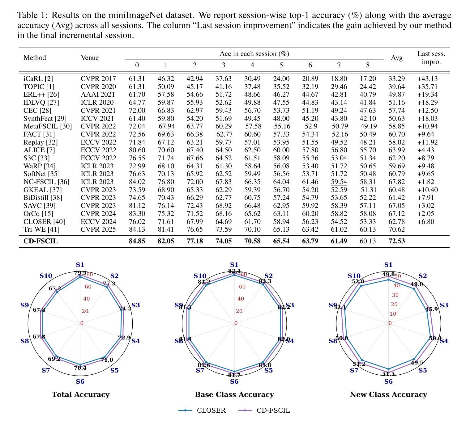 - CD-FSCIL框架在主流FSCIL基准测试上实现最佳性能。