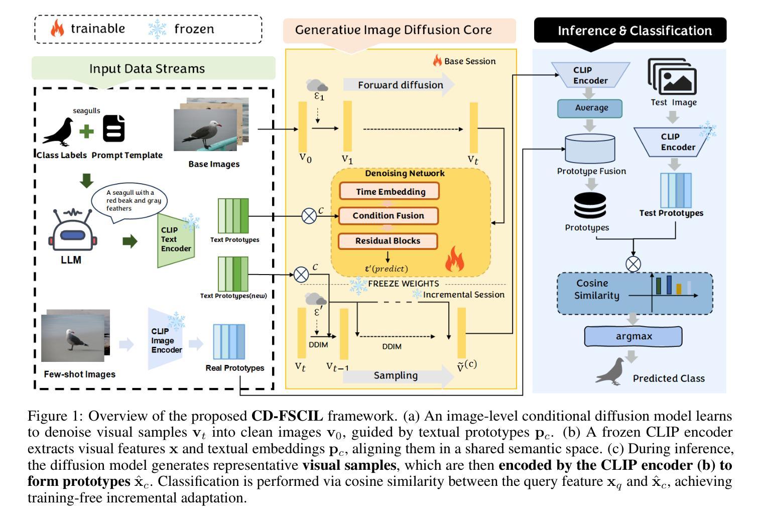- CD-FSCIL框架使用扩散过程替代梯度更新,实现无训练增量适应。