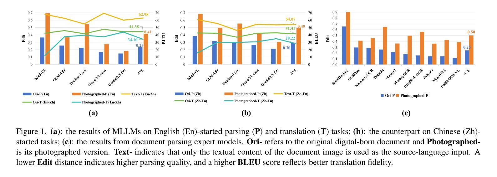 - MLLMs在文档解析和翻译方面具有潜力,但需要应对真实世界捕获条件的挑战。