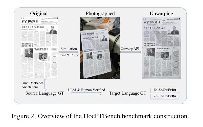 MLLMs在端到端文档解析和翻译方面具有潜力,但现有基准测试未能充分代表真实世界捕获条件的复杂挑战。为此,推出DocPTBench,专门用于拍摄文档解析和翻译的基准测试,包含超过1300张来自多个领域的高分辨率拍摄文档,提供针对解析和翻译的详尽人工验证注释。实验表明,从数字文档转向拍摄文档导致性能显著下降,普通MLLMs的平均准确度下降18%(端到端解析)和12%(翻译),而专用文档解析模型平均下降25%。