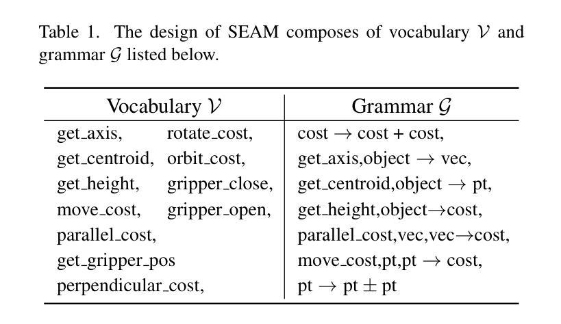 - SEAM实现了VLM的简洁词汇和语义丰富的操作。