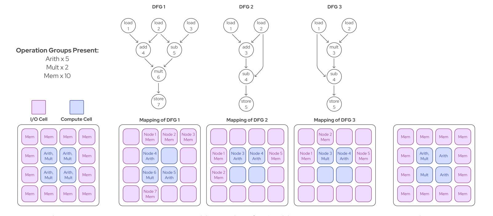 - 框架接受数据流图(DFGs)和目标CGRA作为输入。
