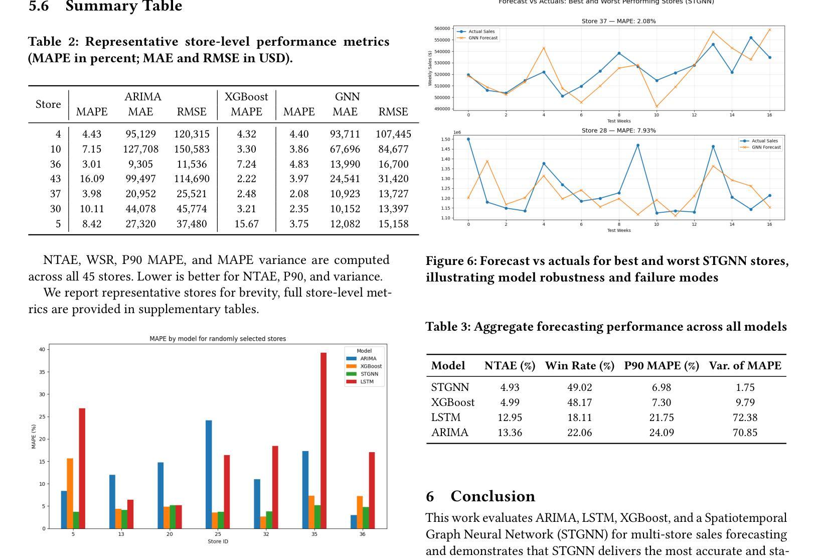 - 时空图神经网络(STGNN)用于多店铺零售销售预测的效果评估。