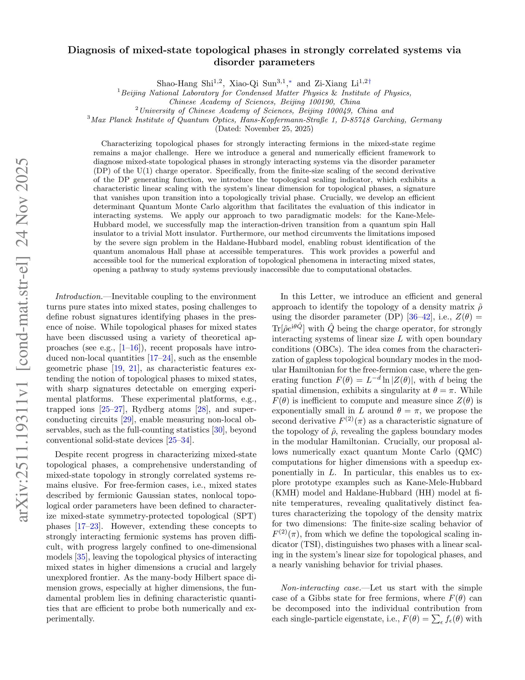 - 引入了一种通过混乱参数诊断混合态拓扑相的一般且数值高效的框架。