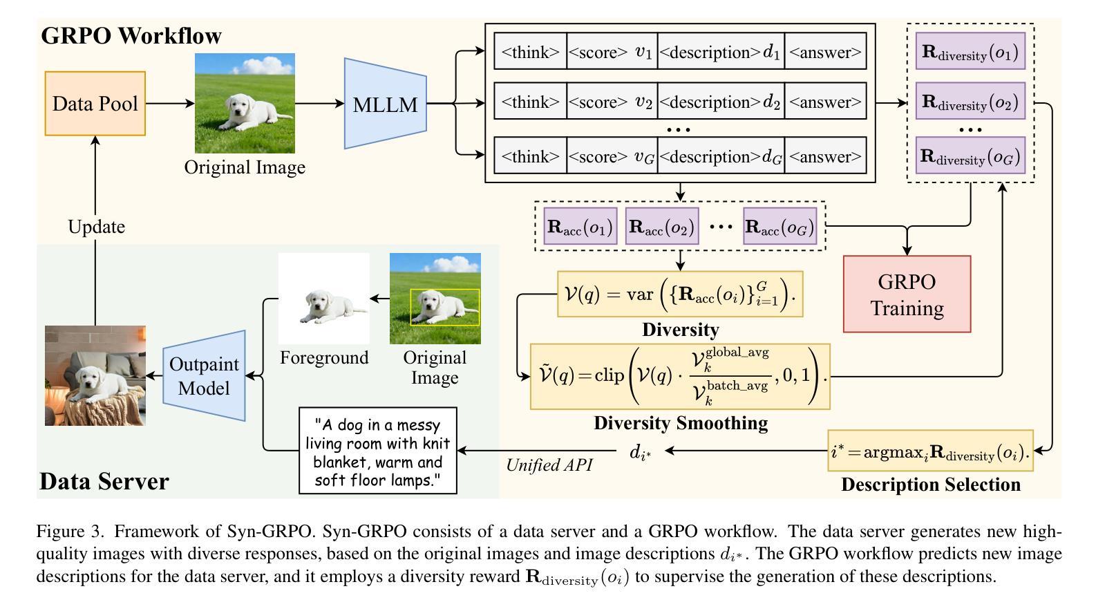 - 框架包含字幕生成、原则导向评分和提示优化,形成闭环。