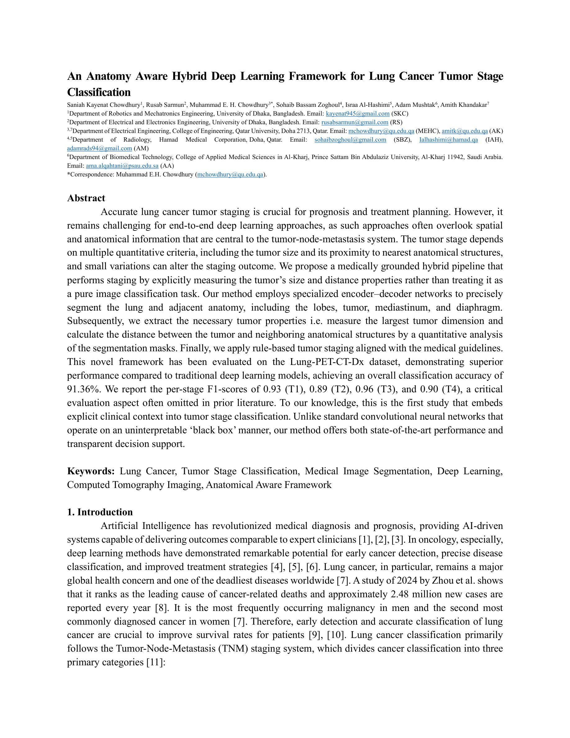 An Anatomy Aware Hybrid Deep Learning Framework for Lung Cancer Tumor Stage Classification
