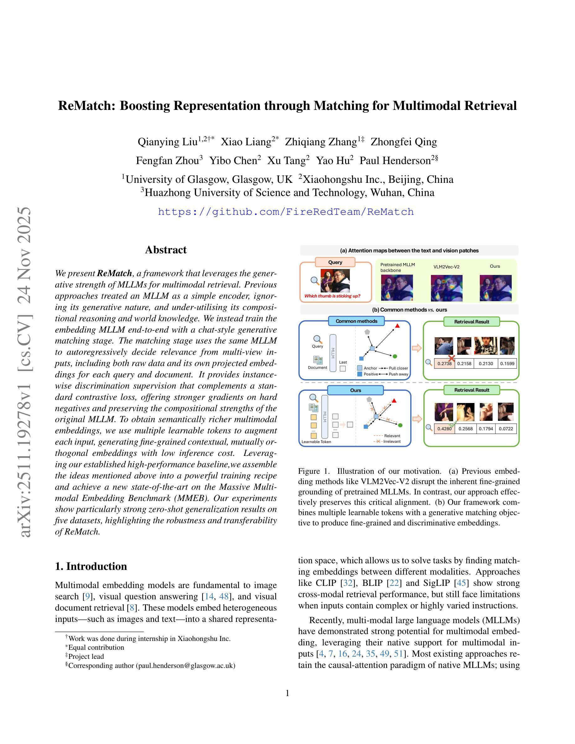 - ReMatch在大量多模态嵌入基准测试上取得最新技术水平的成绩。