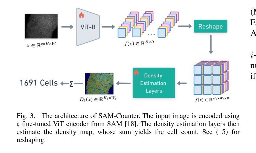 本文介绍了一个大规模注释数据集,包含3,023张与细胞分化相关的免疫细胞化学实验图像,其中超过430,000个细胞位置被手动注释。该数据集具有挑战性,包括高细胞密度、细胞重叠、形态多样、每张图片的细胞计数长尾分布以及染色协议的变化。文章对三类现有方法进行了基准测试,包括基于回归的方法、人群计数技术和细胞计数技术,并在测试集上评估了点注释数据集上自适应的Segment Anything Model(SAM)在显微镜细胞计数上的应用。作为案例研究,我们实现了SAM的密度图适应版本(SAM-Counter),其平均绝对误差(MAE)为22.12,优于现有方法。本研究强调了数据集和基准测试框架在推动自动化细胞计数进展中的价值,并为未来的研究和发展提供了稳健的基础。