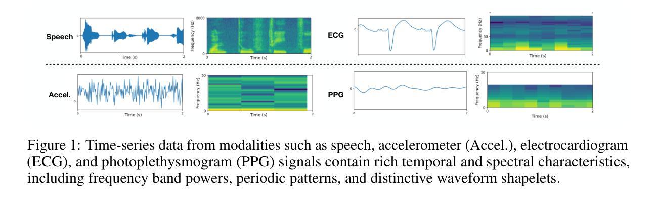 - 语音和传感器时间序列数据在时间和频率域中都包含信息,如谱功率和波形形状。