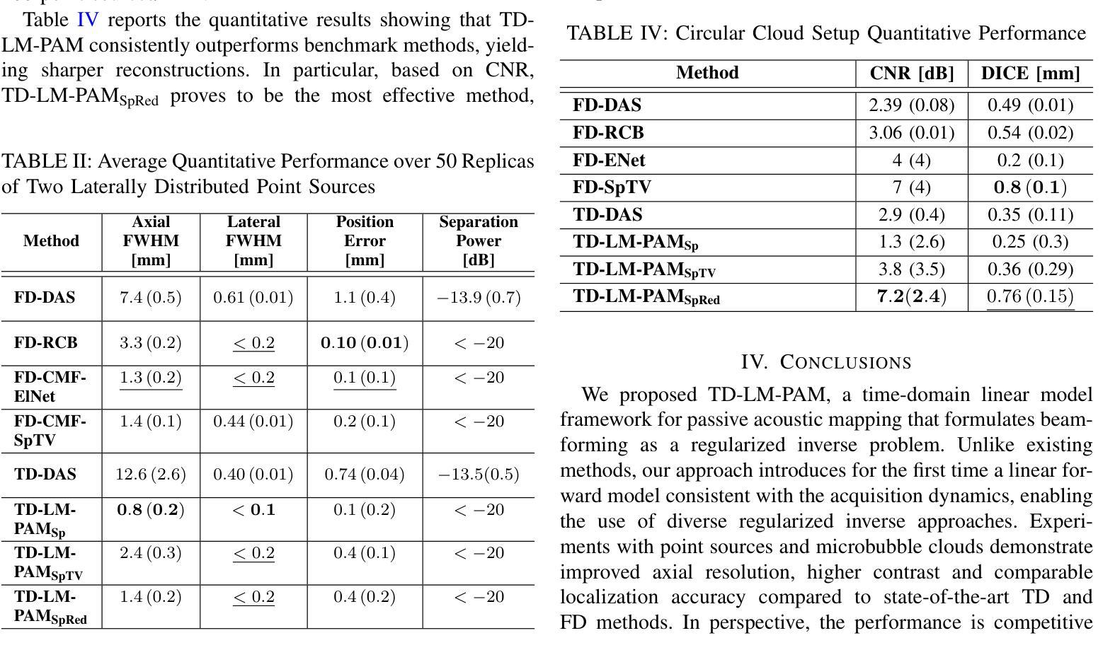 该文介绍了一种基于线性模型的时域波束形成框架,用于被动声学映射中的空化活动空间映射和时间监测。该框架解决了传统波束形成方法在轴向分辨率方面的限制,并通过时空正则化技术实现数据的高效利用,以适应不同的被动空化场景。