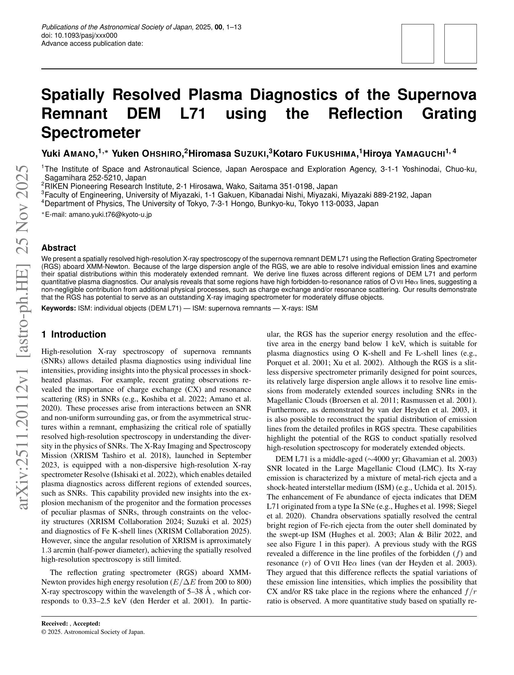 - 使用反射光栅光谱仪(RGS)对DEM L71进行高分辨X射线光谱分析。