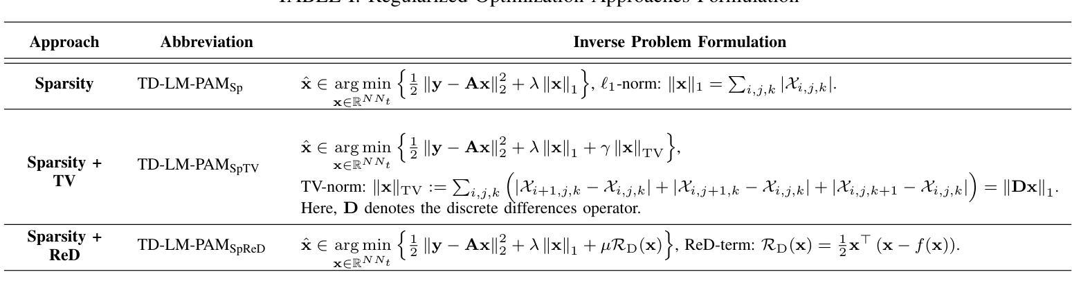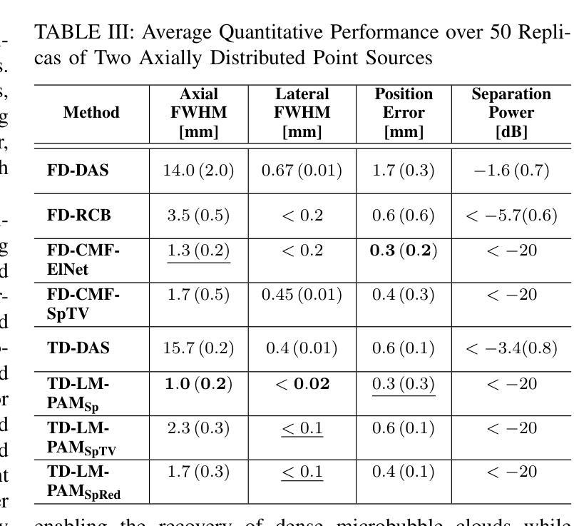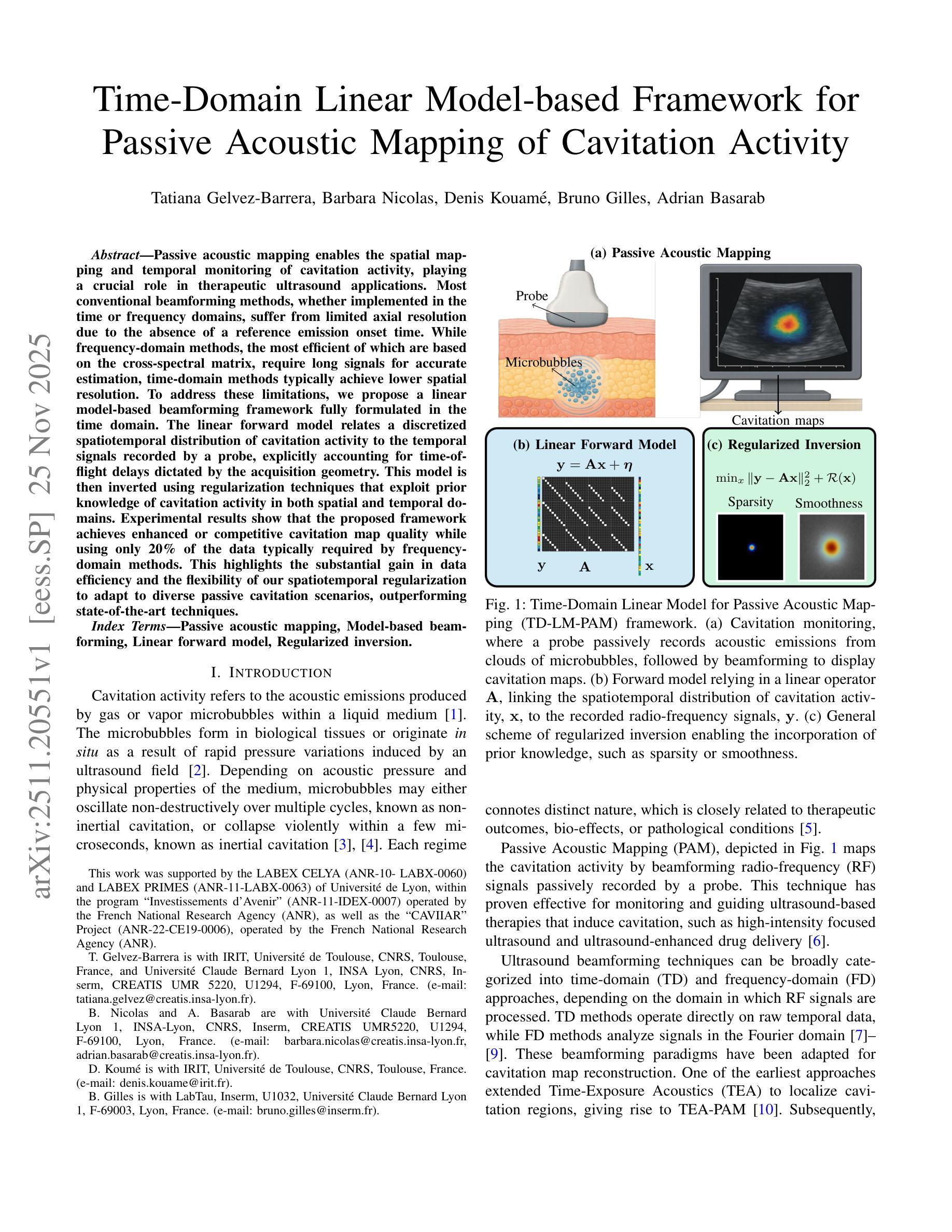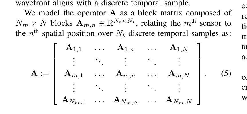 被动声学映射能够实现空化活动的空间映射和时间监测,在超声治疗应用中发挥着至关重要的作用。大多数传统的波束形成方法,无论是在时间域还是频率域实现,都因缺少参考发射起始时间而受限于轴向分辨率。虽然基于频域的方法,其中最有效的是基于交叉谱矩阵的方法,需要长信号来进行准确估计,但时间域方法通常实现较低的空间分辨率。为了解决这些局限性,我们提出了一种完全以时间域形式制定的基于线性模型的波束形成框架。线性前向模型将离散时空分布的空化活动与探头记录的临时信号关联起来,明确考虑了由采集几何决定的飞行时间延迟。然后,该模型使用在空域和时间域利用空化活动先验知识的正则化技术进行反演。实验结果表明,所提出的框架在仅使用频率域方法通常需要的数据的20%的情况下,实现了增强或竞争性的空化图质量。这突出了我们的时空正则化在数据效率方面的巨大收益,以及其适应各种被动空化场景的灵活性,优于现有技术。
