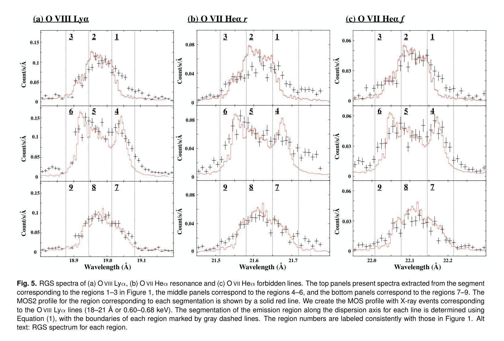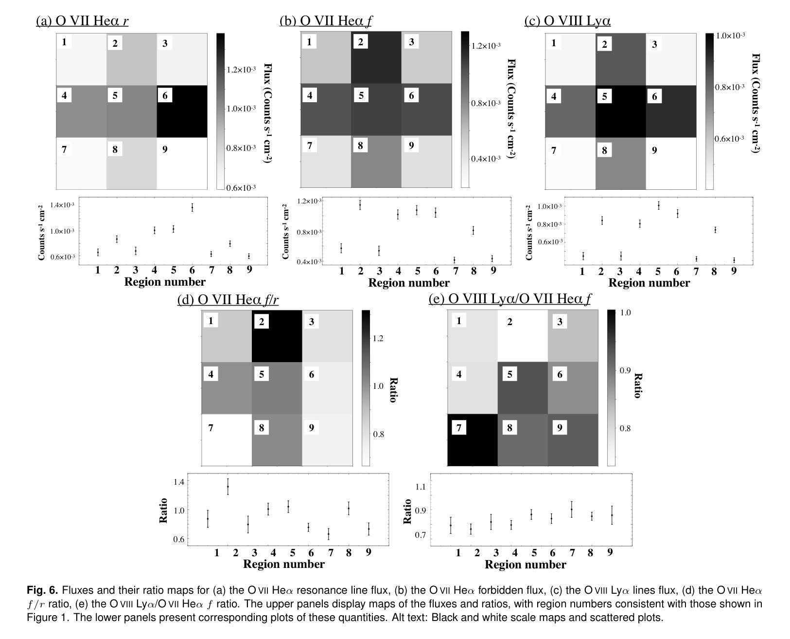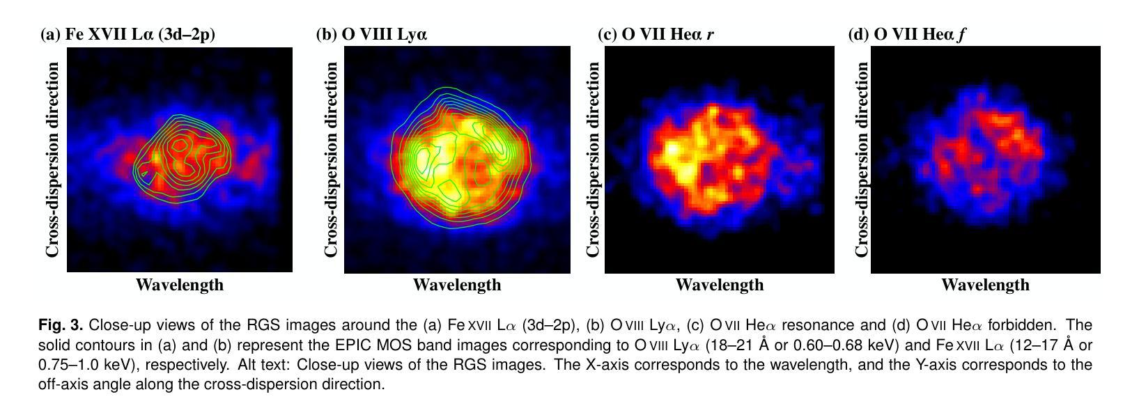 - 发现某些区域具有高禁止与共振比的O\emissiontype{VII} Heα线,暗示存在其他物理过程的贡献。