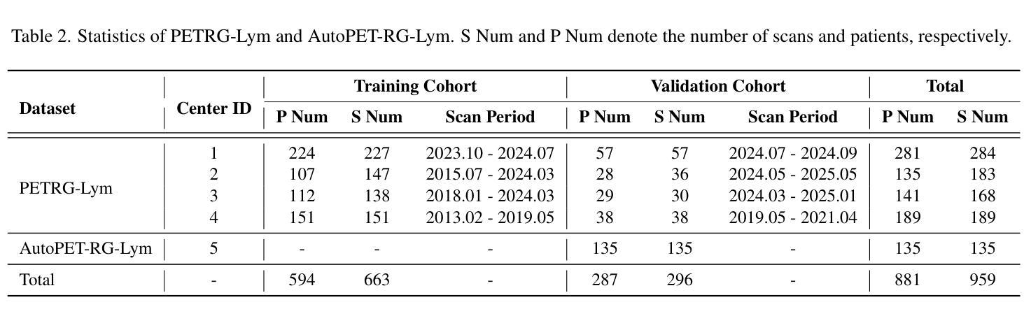 - 通过构建多中心淋巴瘤数据集PETRG-Lym和公开基准测试AutoPET-RG-Lym来推动PETRG的发展。