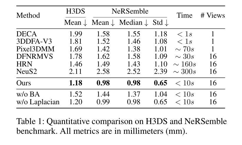 - 方法的处理速度快,能够在10秒内完成16视角的高质量重建。