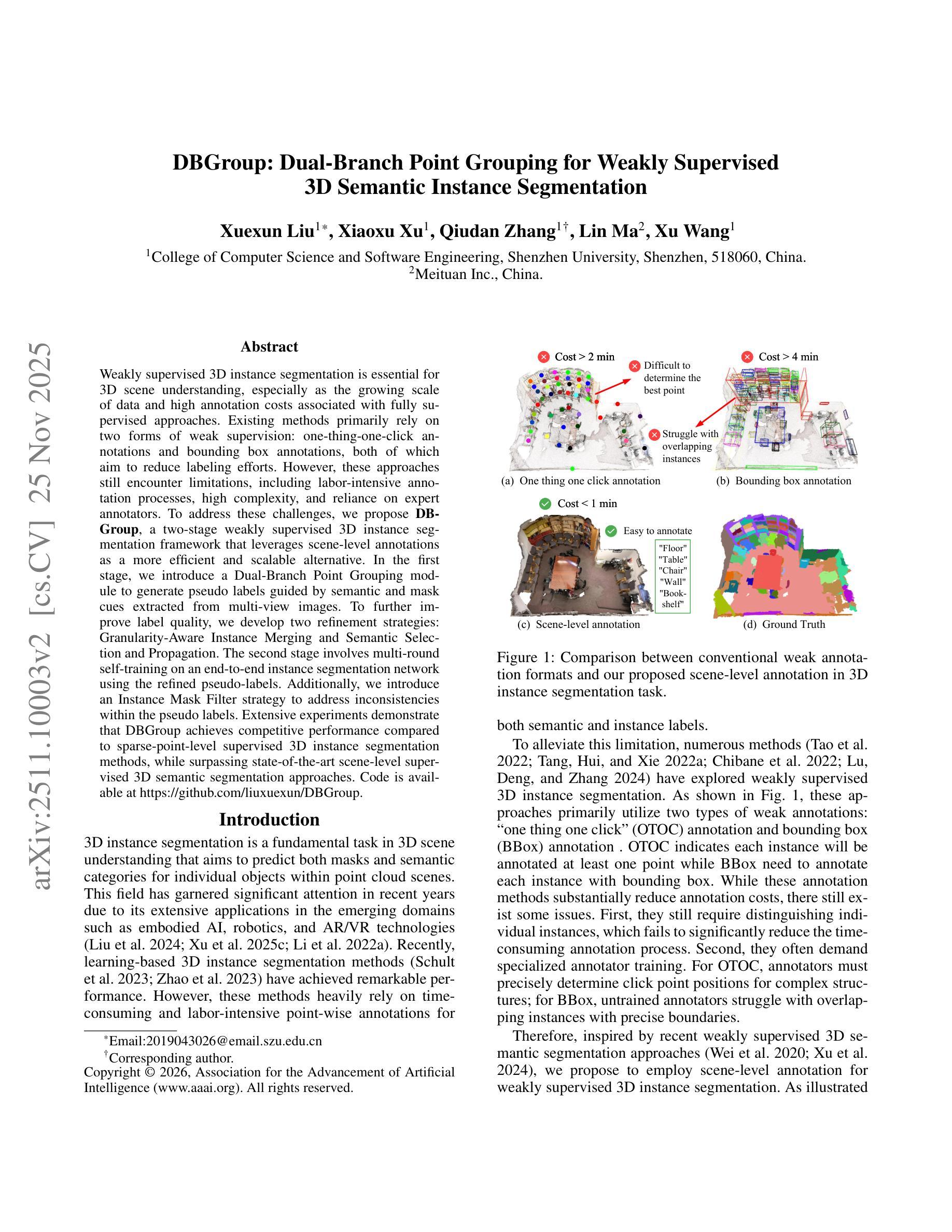 - DBGroup是一个两阶段的弱监督3D实例分割框架,旨在解决大规模数据和昂贵标注成本的问题。