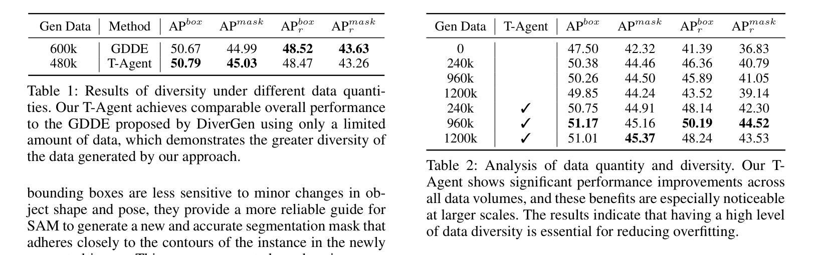 - InstaDA包括文本代理(T-Agent)和图像代理(I-Agent),分别通过大型语言模型和扩散模型的协作以及新实例生成来丰富数据多样性和整体数据分布。