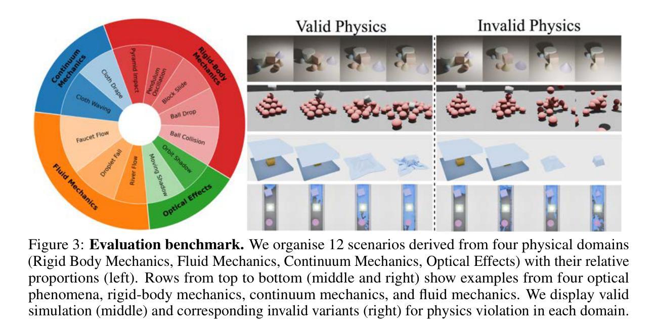 - 评价挑战:物理正确性与视觉效果的区分困难。