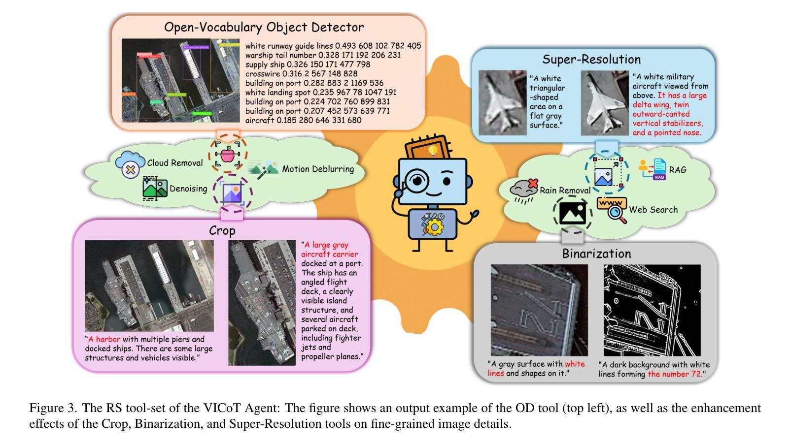 新型多模态代理框架Vision-Interleaved Chain-of-Thought Framework(VICoT)通过动态融入视觉工具实现显式多轮推理,支持远程遥感图像分析任务从传统的对象识别向复杂的智能推理转变。该框架采用基于堆栈的推理结构和模块化MCP兼容的工具套件,使LLMs能够高效执行多轮交错式视语言推理任务,具有强大的泛化能力和灵活性。同时,提出Reasoning Stack蒸馏方法,将复杂Agent行为迁移到小型轻量化模型上,确保推理能力的同时显著降低复杂性。在多个遥感基准测试上的实验表明,VICoT在推理透明度、执行效率和生成质量方面显著优于现有SOTA框架。