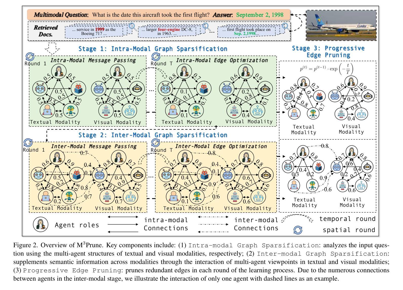 - M^3Prune通过内部模态图稀疏化和跨模态图稀疏化来优化多智能体通信。