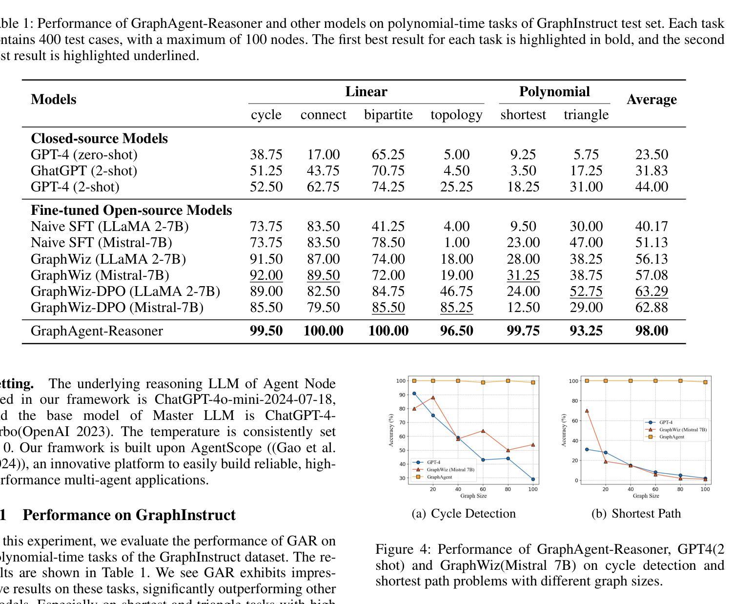 - 在GraphInstruct数据集上的评估中,GraphAgent-Reasoner表现出近乎完美的准确性。