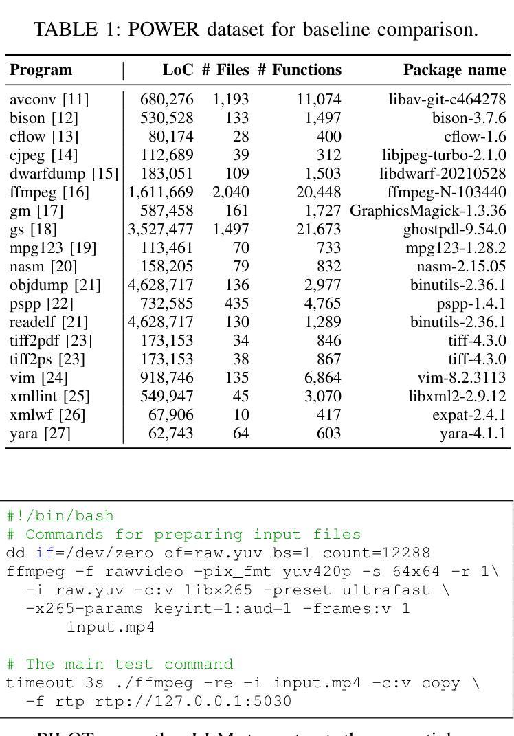 - PILOT通过提供目标函数的潜在调用路径作为上下文,以生成更准确的命令行选项字符串和输入文件。