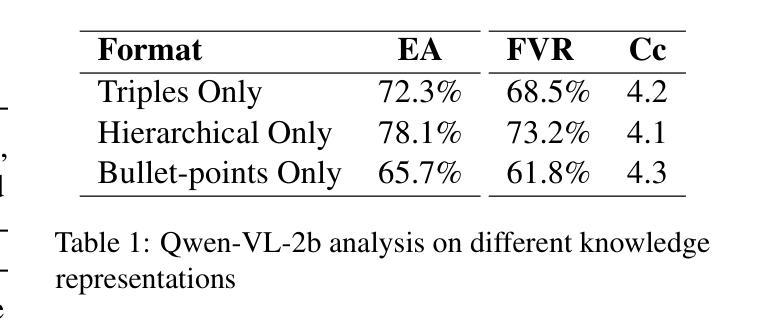 - 使用了层次化、三元组和要点化的知识表示方法评估框架的有效性。