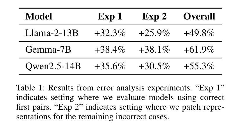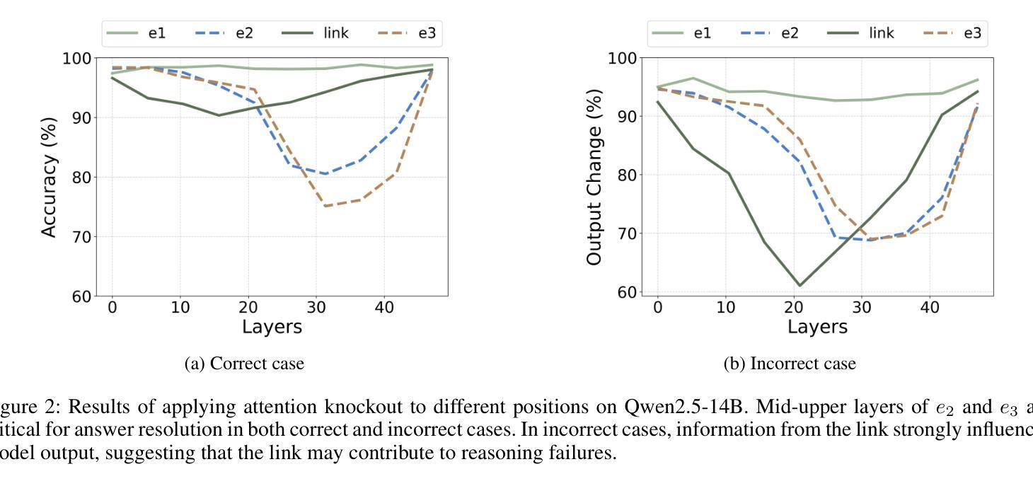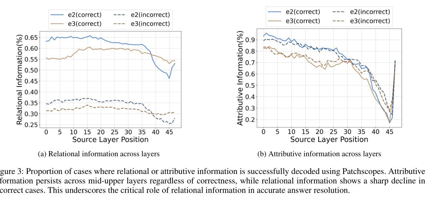 - LLMs能够编码类似实体间的关系信息,并在正确情况下将属性与关系信息传播至中层和上层。