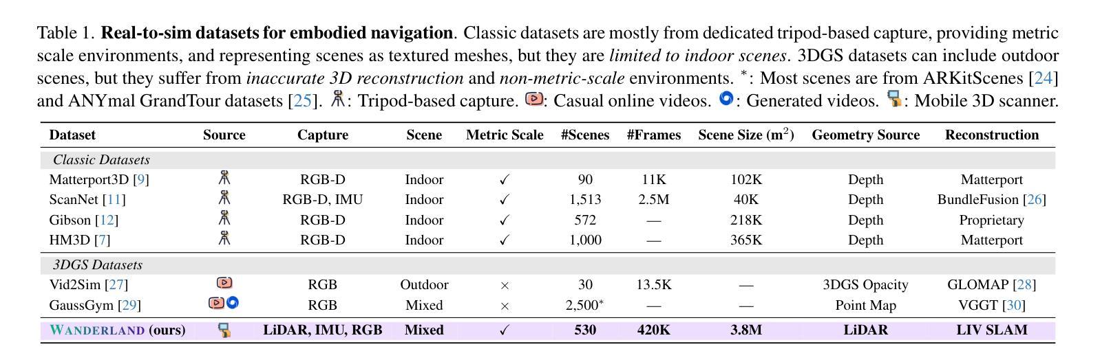 - Wanderland不仅是一个可靠的测试平台,还提供了丰富的原始传感器数据,可用于评估三维重建和视图合成模型。