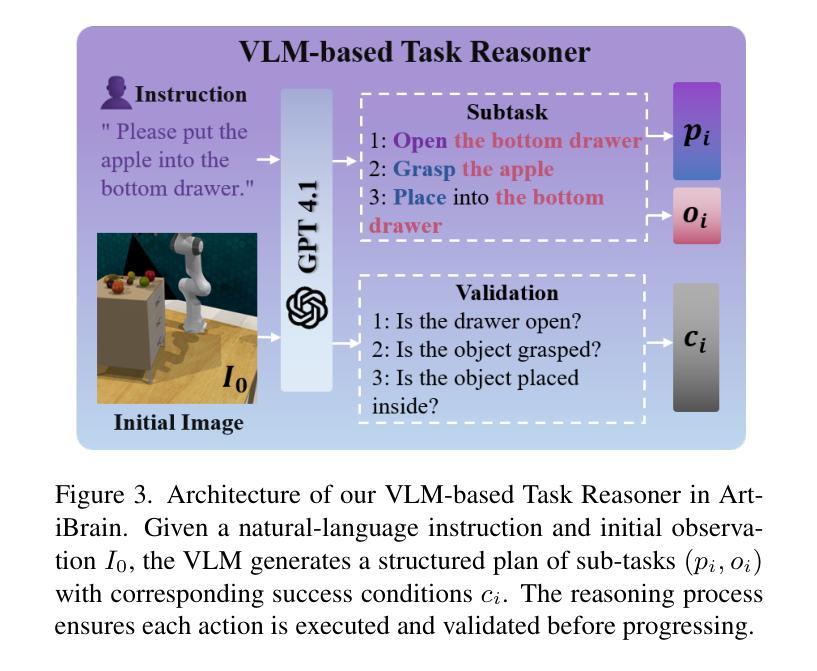 - ArtiBrain框架结合了高级推理和自适应低级控制,使用VLM任务推理器进行子目标的分解和验证。