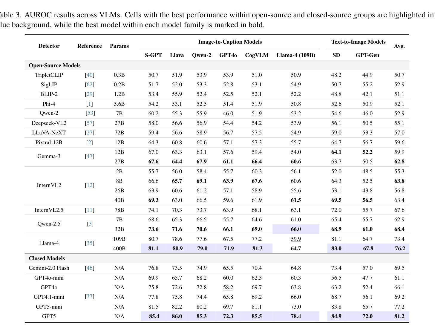 - 视觉语言模型表现出强烈的自我偏好,这可能影响其对图像文本的准确评估。