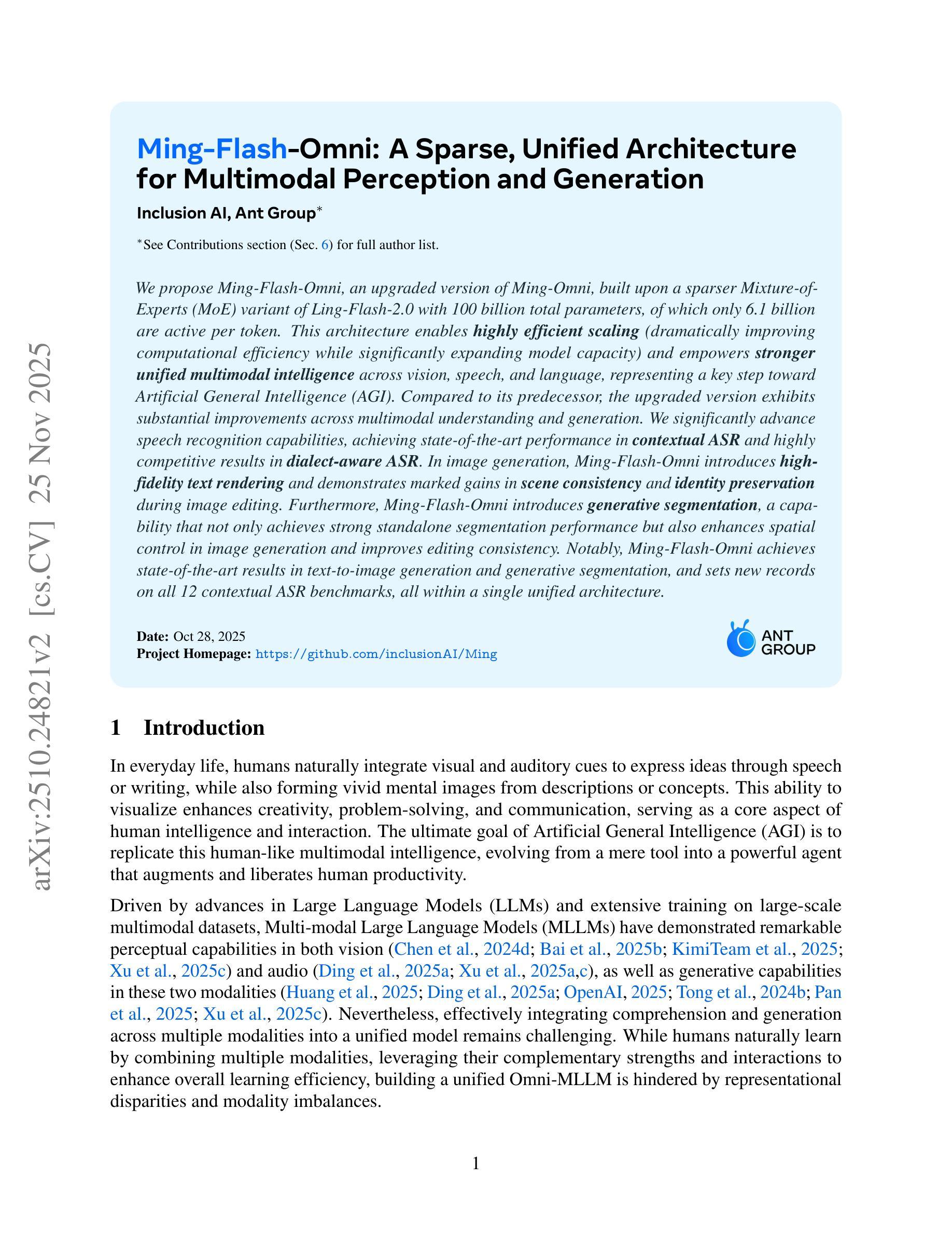 Authors:Inclusion AI, :, Bowen Ma, Cheng Zou, Canxiang Yan, Chunxiang Jin, Chunjie Shen, Chenyu Lian, Dandan Zheng, Fudong Wang, Furong Xu, GuangMing Yao, Jun Zhou, Jingdong Chen, Jianing Li, Jianxin Sun, Jiajia Liu, Jian Sha, Jianjiang Zhu, Jianping Jiang, Jun Peng, Kaixiang Ji, Kaimeng Ren, Libin Wang, Lixiang Ru, Longhua Tan, Lu Ma, Lan Wang, Mochen Bai, Ning Gao, Qingpei Guo, Qinglong Zhang, Qiang Xu, Rui Liu, Ruijie Xiong, Ruobing Zheng, Sirui Gao, Tao Zhang, Tianqi Li, Tinghao Liu, Weilong Chai, Xinyu Xiao, Xiaomei Wang, Xiaolong Wang, Xiao Lu, Xiaoyu Li, Xingning Dong, Xuzheng Yu, Yi Yuan, Yuting Gao, Yuting Xiao, Yunxiao Sun, Yipeng Chen, Yifan Mao, Yifei Wu, Yongjie Lyu, Ziping Ma, Zhiqiang Fang, Zhihao Qiu, Ziyuan Huang, Zizheng Yang, Zhengyu He