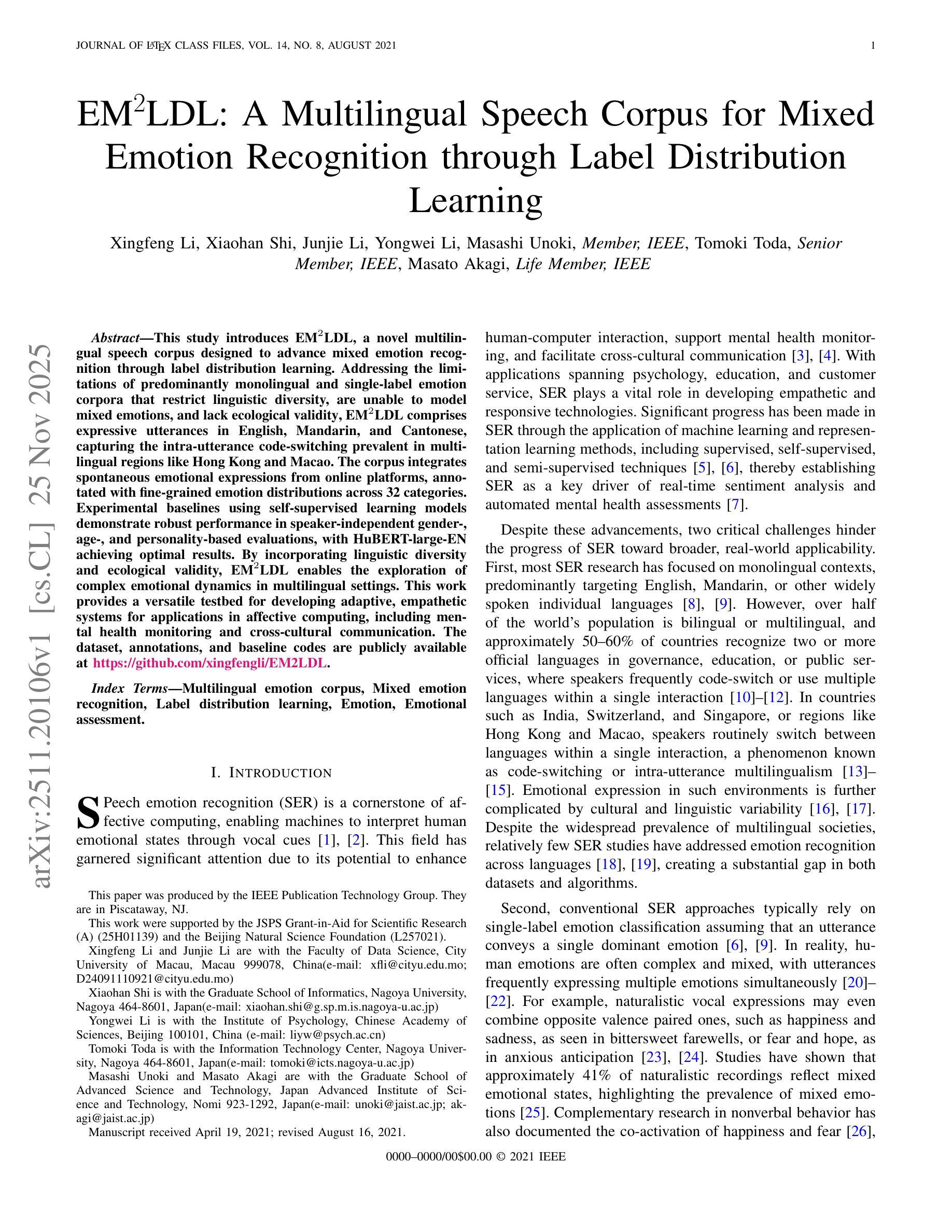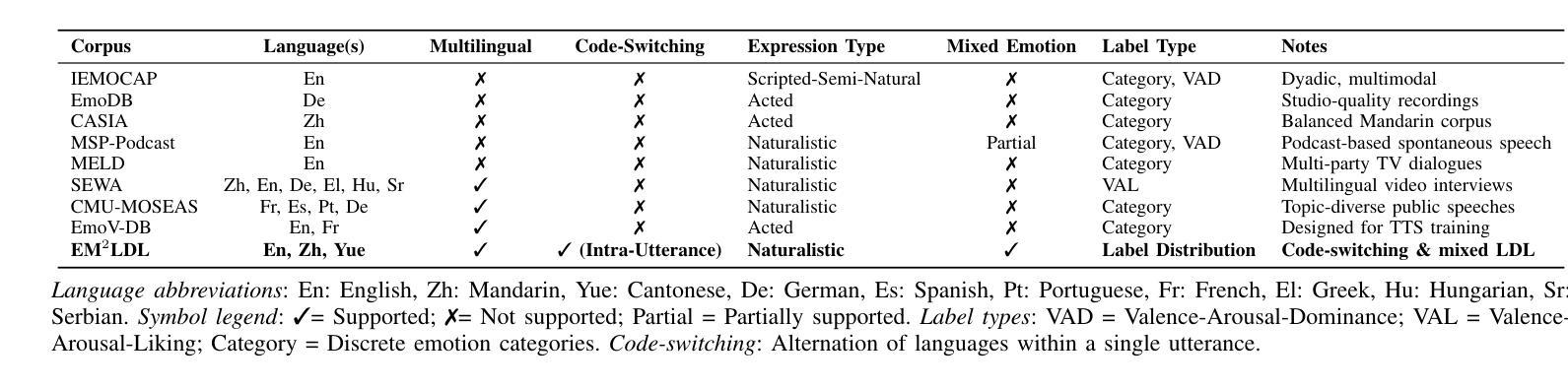 - EM2LDL是一个新型的多语言语音语料库,旨在推进混合情感识别。